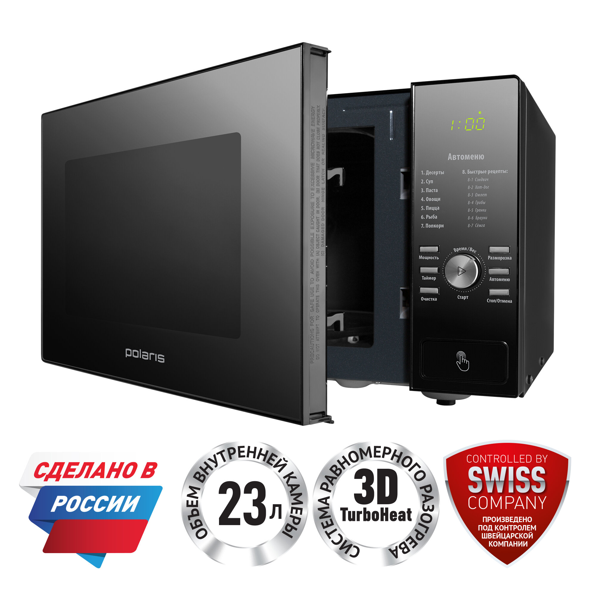 Печь микроволновая соло Polaris PMO 2303D RUS, соло, 23 л.,черная информация: