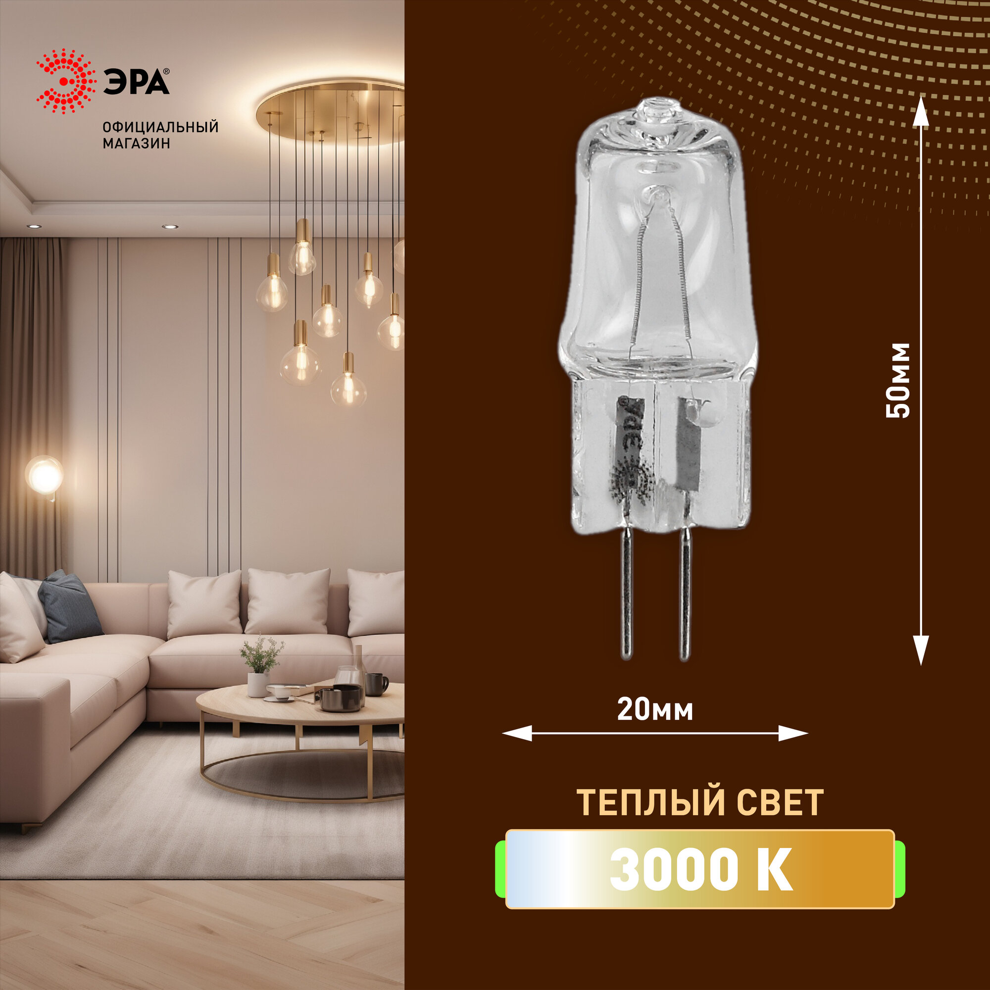 (10 шт.) Галогенная лампочка ЭРА JC 20Вт 12В G4 579 ₽