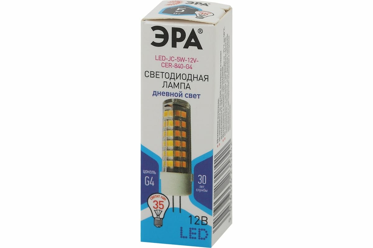 Отзывы на ЭРА Лампочка светодиодная ЭРА STD LED JC-5W-12V-CER-840-G4 G4 5 Вт керамика капсула нейтральный белый св