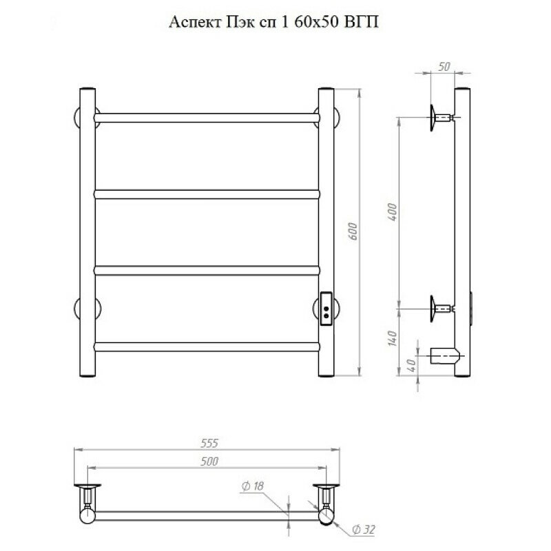 Полотенцесушитель электрический Тругор Аспект Пэк сп 1 60х50см, графит информация: