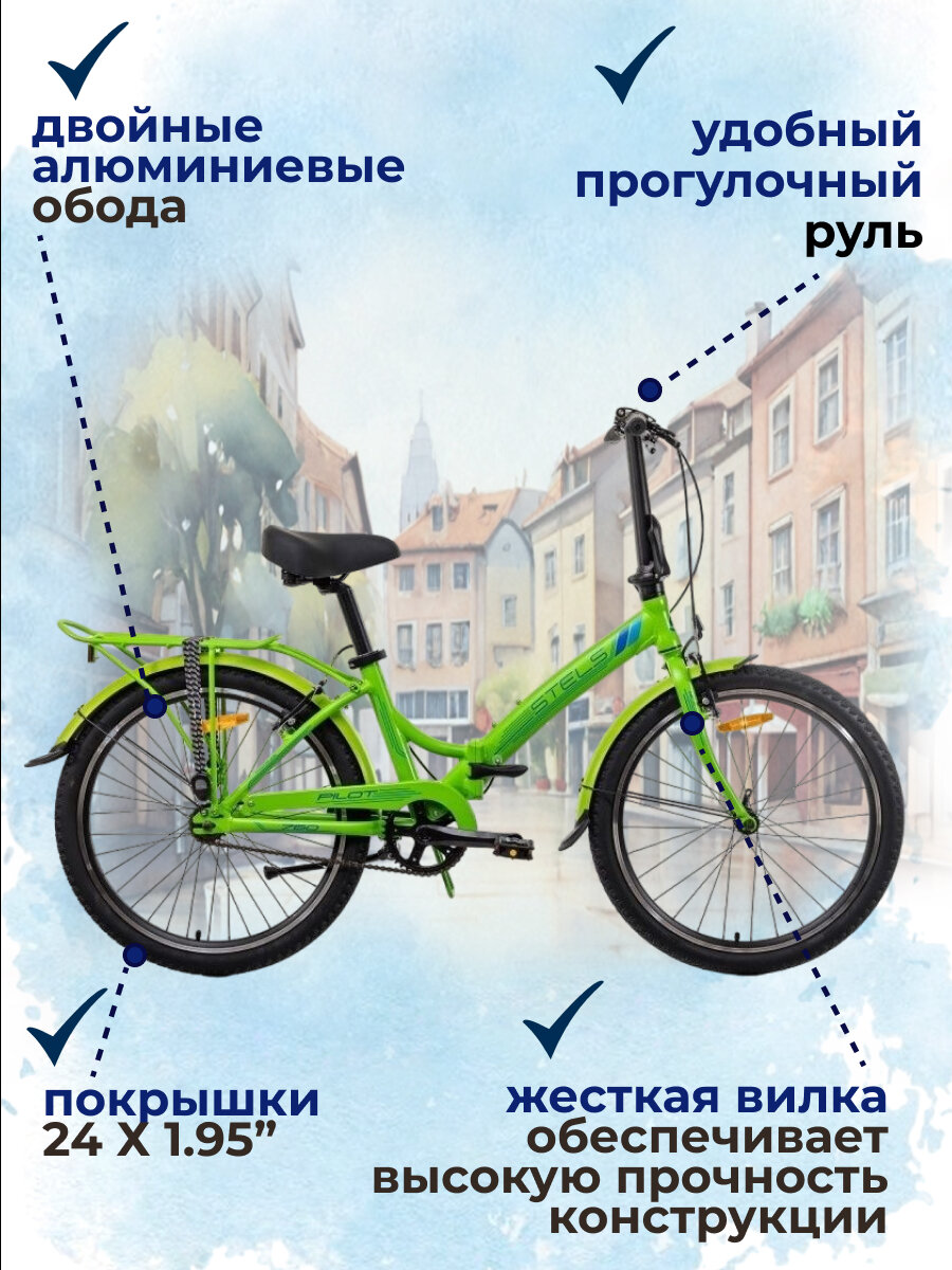 Отзывы на Велосипед подростковый, складной Pilot-760 24" -колёса ,размер рамы 14", (рекомендованый рост 135-160 см) Салатовый ,STELS (Стелс)