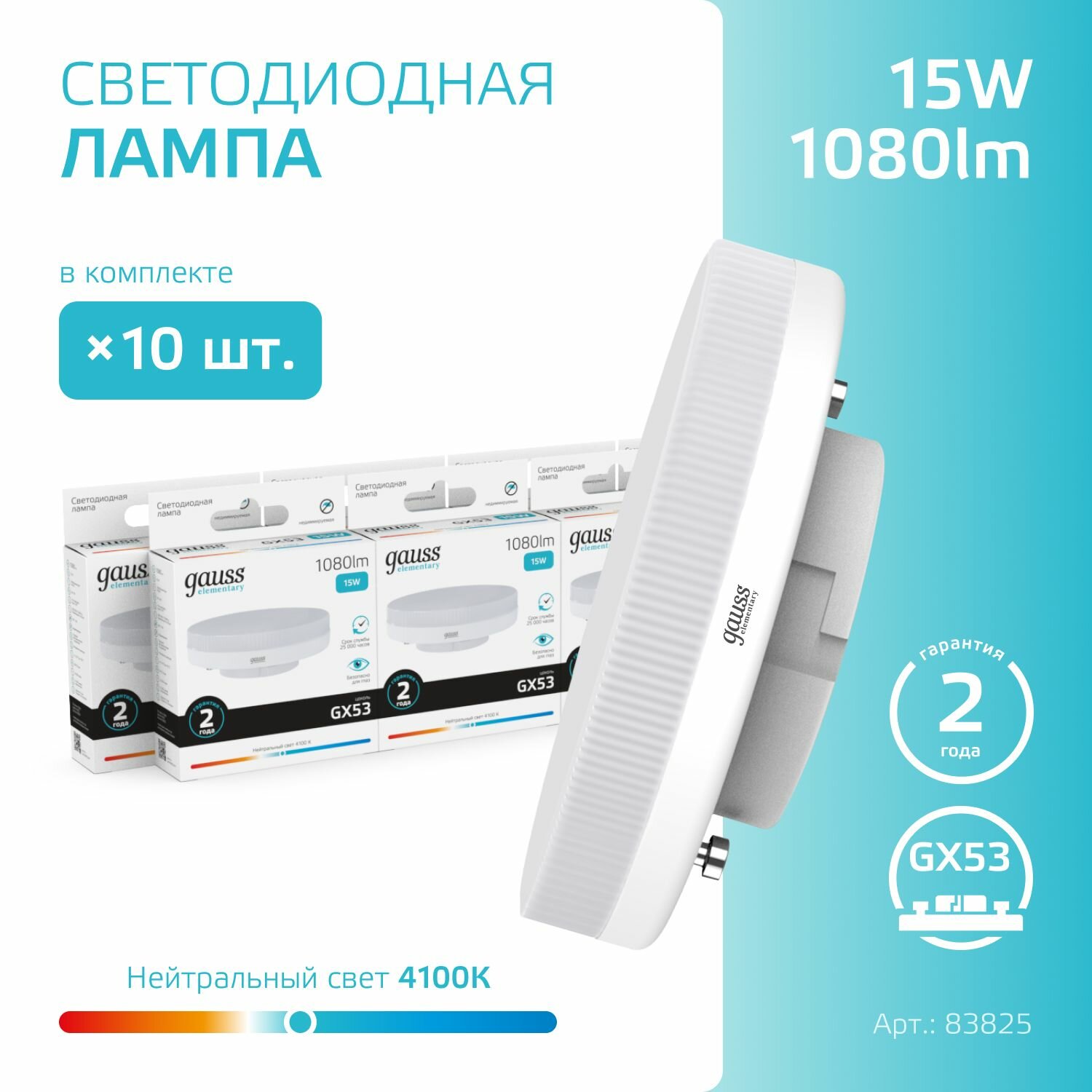 10 цен на Лампочка светодиодная GX53 15W нейтральный белый свет 4100K упаковка 10 шт. Gauss Elementary