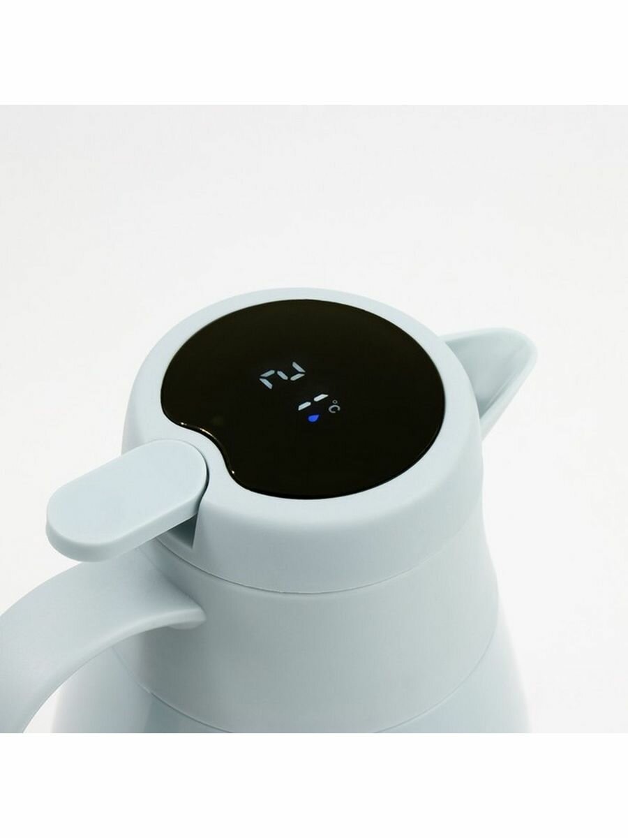 10 цен на Термокувшин, 1.5 л, сохраняет тепло 24 ч, с термометром, стеклянная колба, голубой