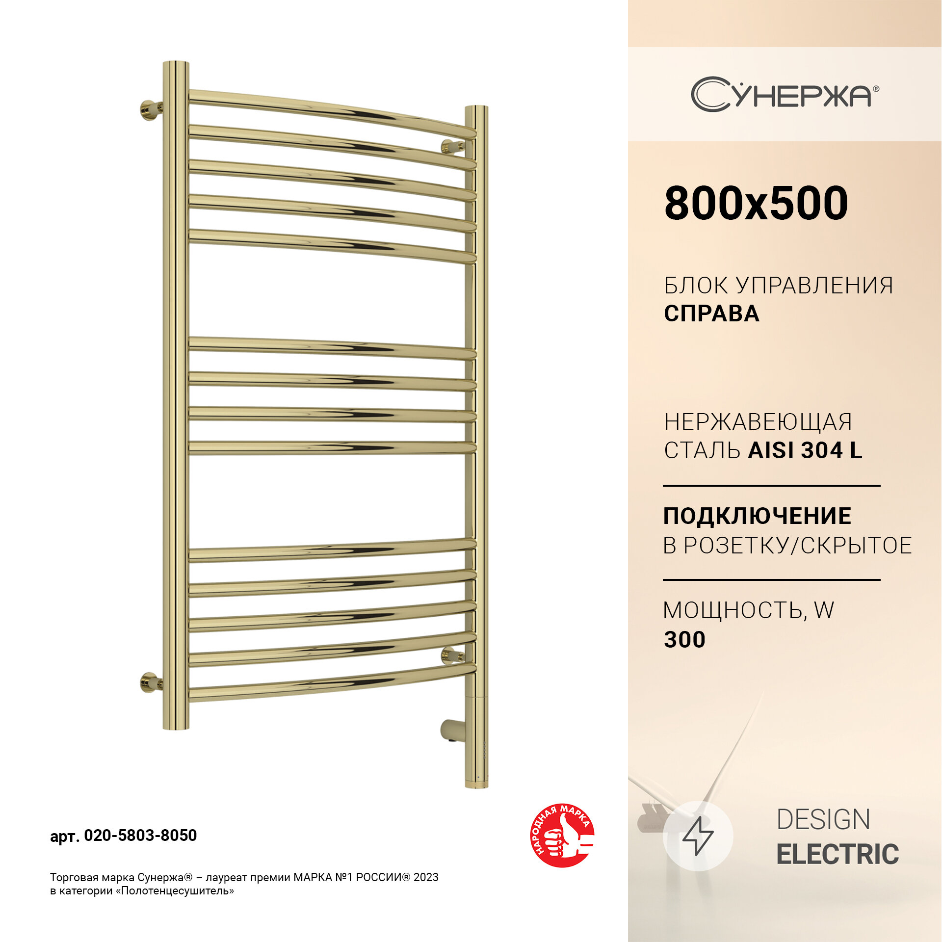 Электрический полотенцесушитель Сунержа Богема 3.0 выгнутая 800x500 МЭМ Пр. шампань арт. 020-5803-8050