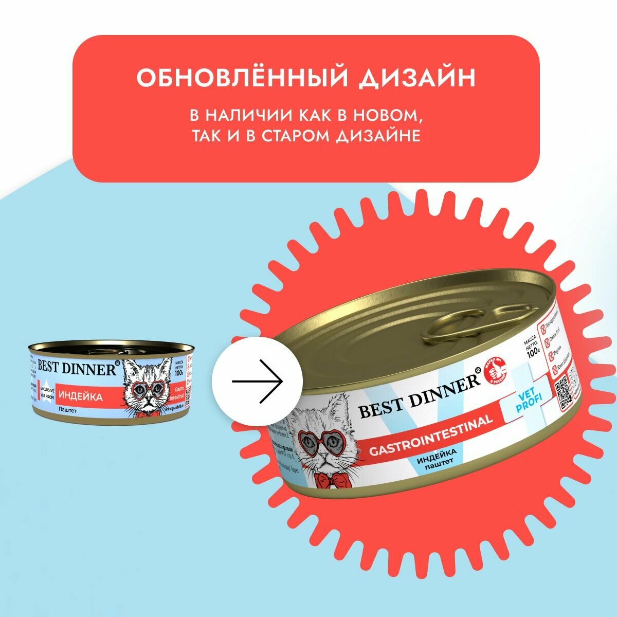 Влажный корм Best Dinner VET PROFI Gastro Intestinal для котят и кошек любых пород Индейка 12шт по 100г информация: