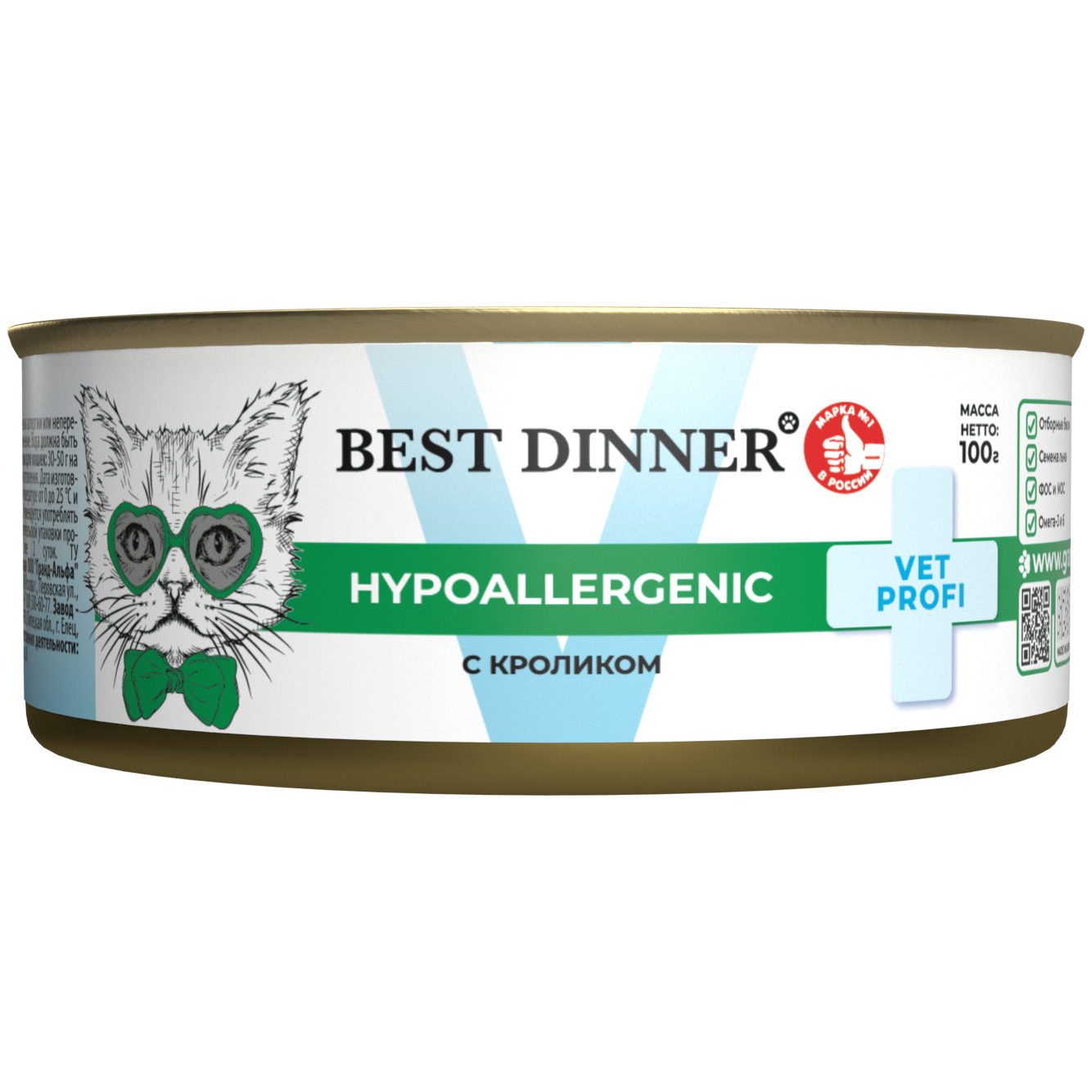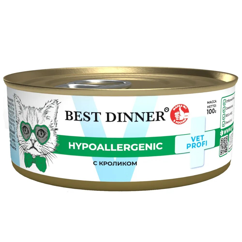 Консервы Best Dinner Vet Profi Hypoallergenic, диетический, для кошек, при пищевой аллергии, с кроликом 100гр информация: