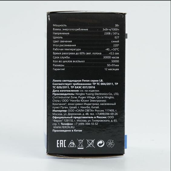 Лампа FERON LB-375 E27, 3W, синяя, матовая, 5 шт информация:
