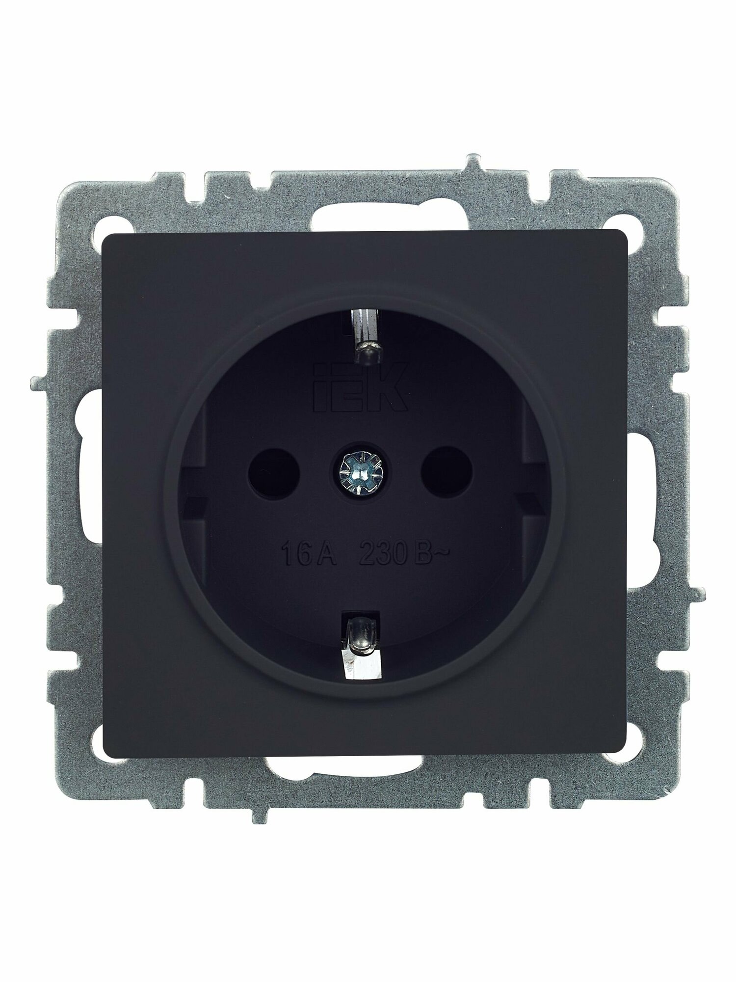 BRITE Розетка с заземлением с защитными шторками 16А РС14-1-0-БрЧ черный () IEK BR-R14-16-K02 (1 шт.)