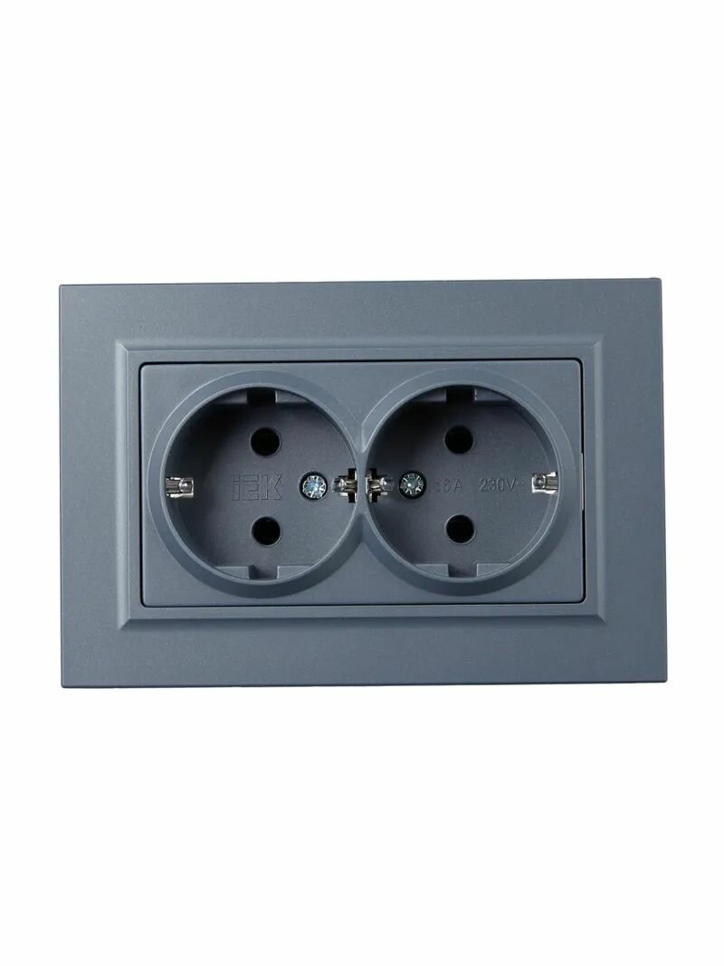 BRITE Розетка 2-местная с заземлением без шторок 16А в сборе РС12-3-БрС сталь IEK 719 ₽