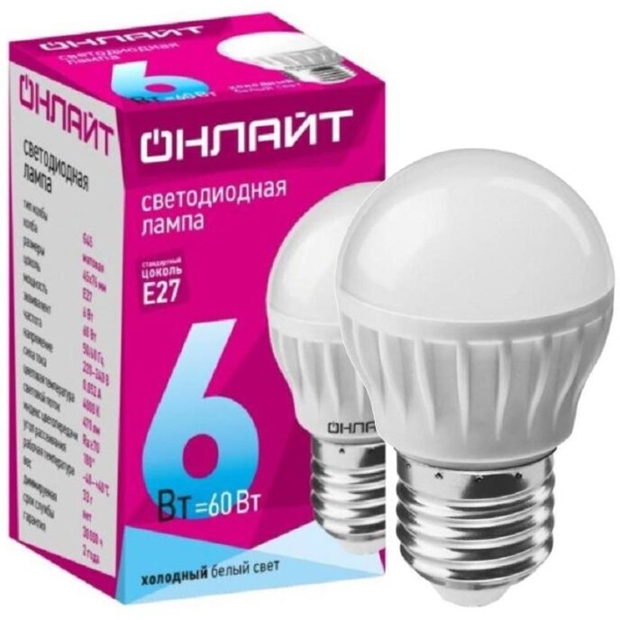 Мы выбрали 10 лучших цен на Лампа светодиодная E27 онлайт Шар, 6Вт, 6500К, лампочка 1 шт. 61138. Перед тем как купить Лампа светодиодная E27 онлайт Шар, 6Вт, 6500К, лампочка 1 шт. 61138 посмотрите найденные предложения из Яндекс Маркета и других сайтов на основе XML фидов.