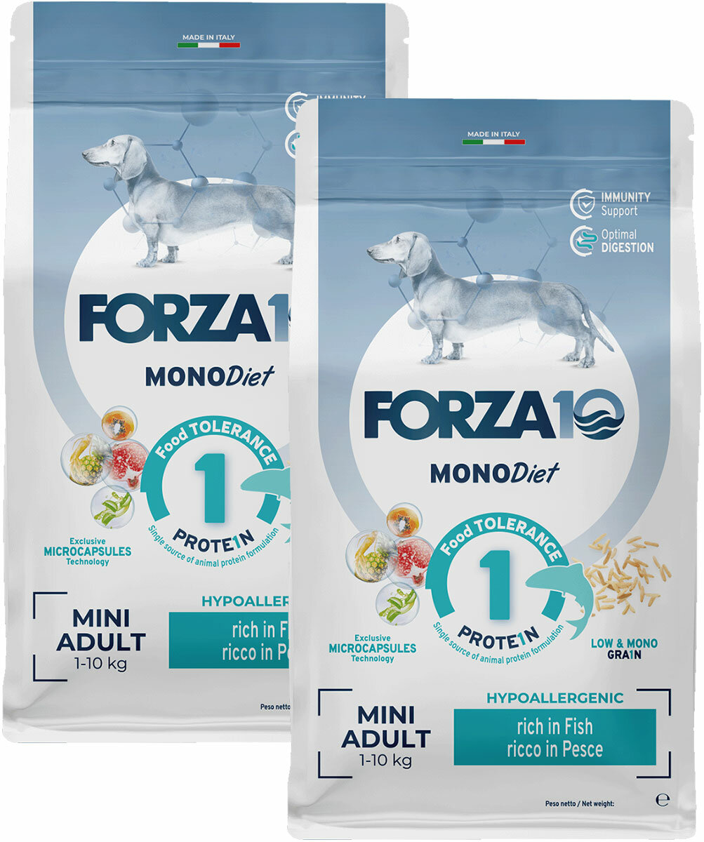 10 цен на FORZA10 DOG MINI DIET монобелковый для взрослых собак маленьких пород при аллергии с рыбой (0,4 + 0,4 кг)