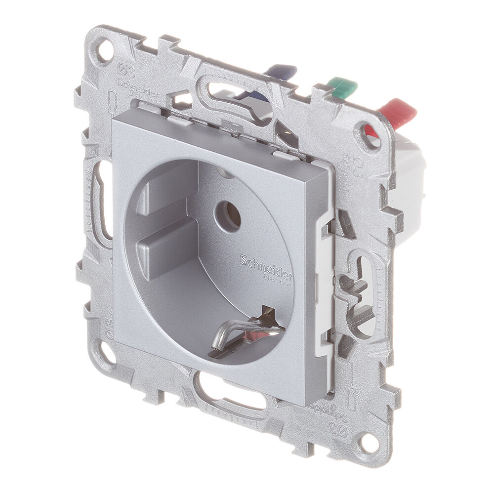 Розетка Schneider Electric NU505630, 16 А, с заземлением, алюминиевый