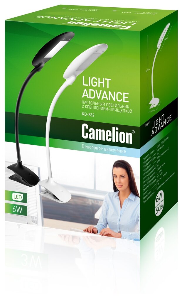 Лампа офисная светодиодная Camelion KD-832, 8 Вт, черный информация: