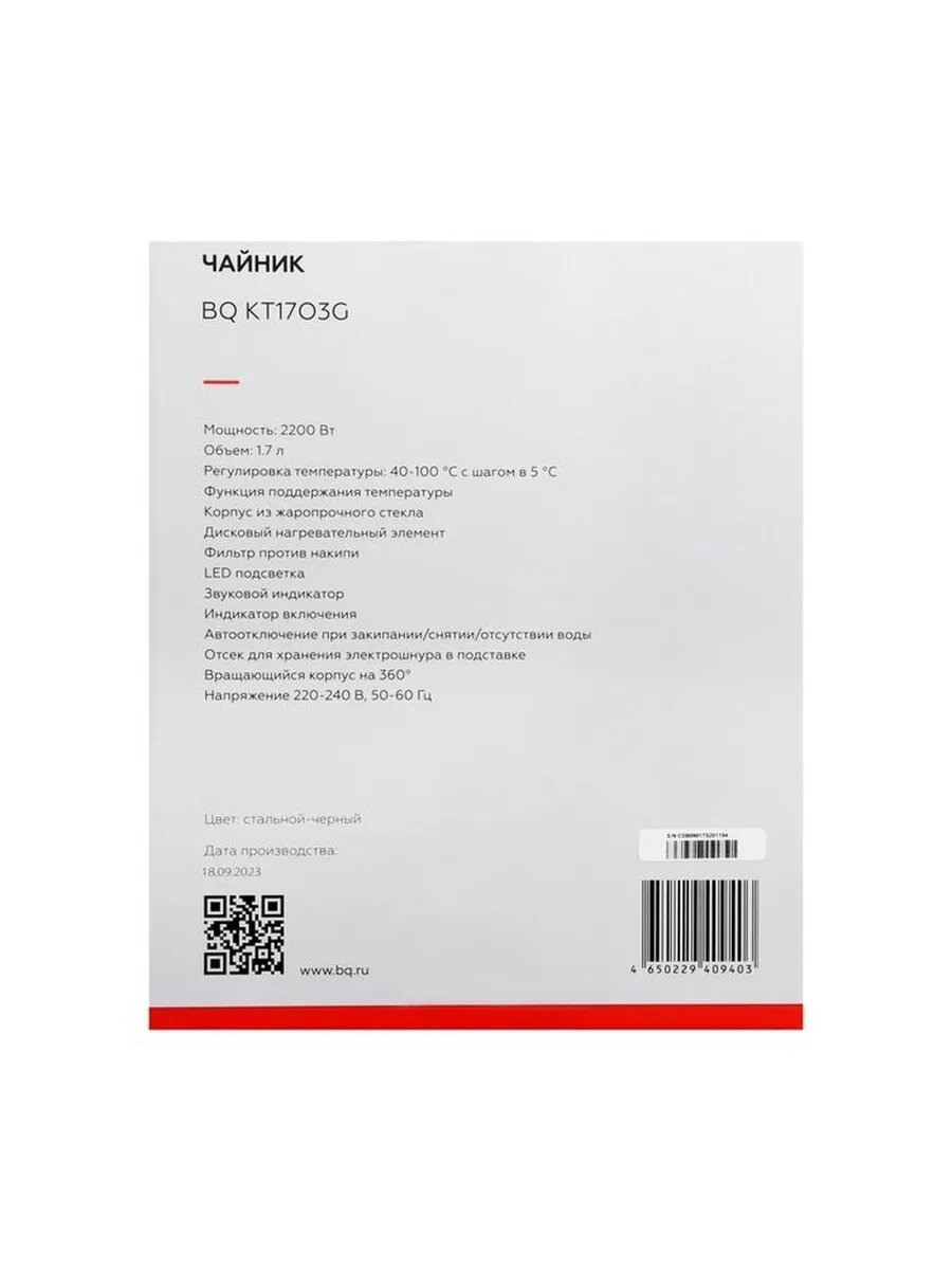 Чайник BQ-KT1828SW Сталь-Чёрный 1315782