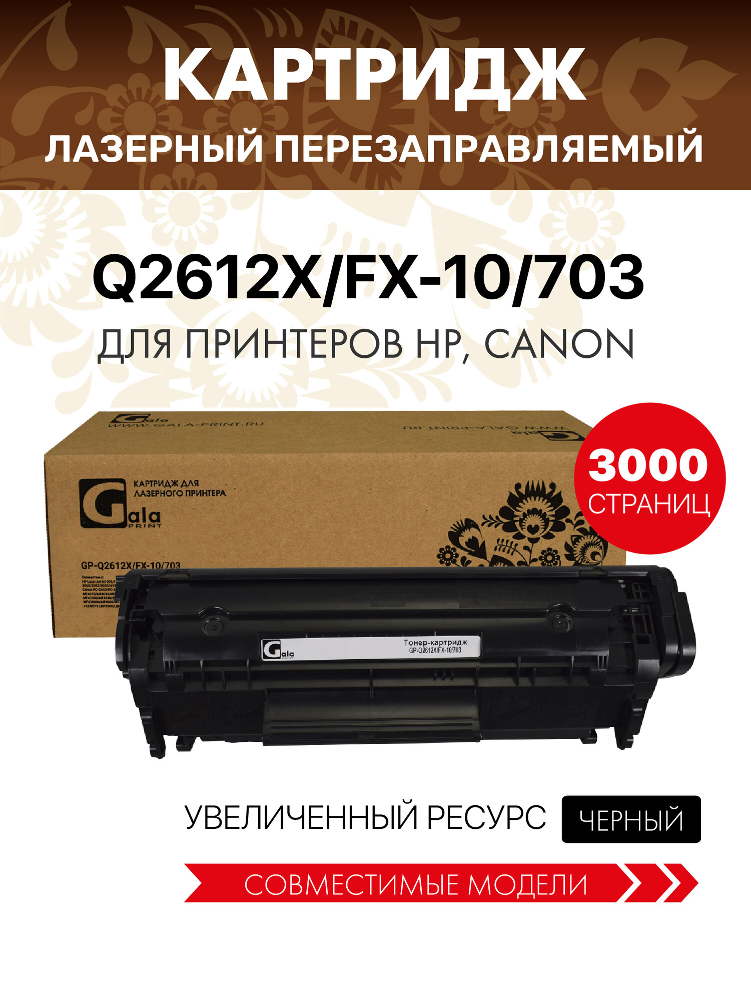 Картридж для принтера GalaPrint Лазерный универсальный черный, для HP, Canon (GP_Q2612A/FX-10/703)