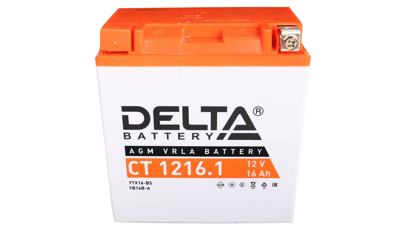 Отзывы на Мото аккумулятор стартерный Delta CT 1216.1 12V 16Ah прямая полярность 230А, AGM (YTX16-BS; YB16B-A)