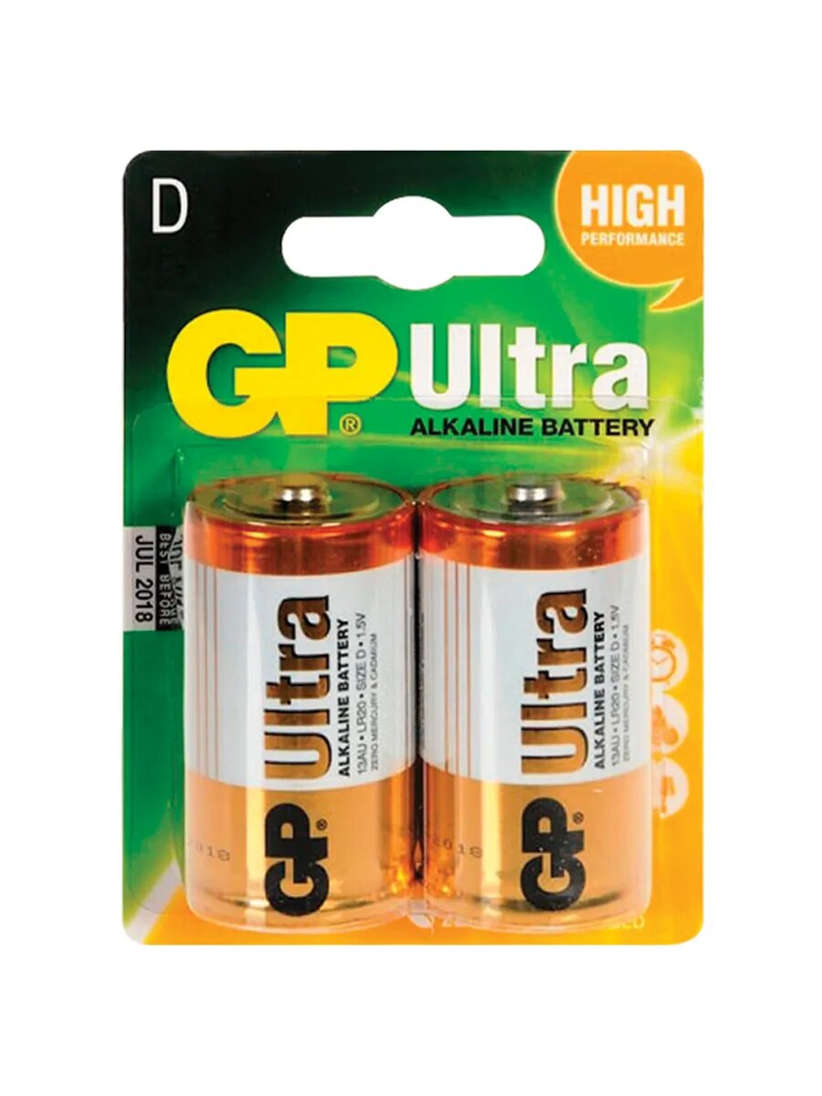2шт Батарейки GP Ultra, D (LR20, 13А), алкалиновые, комплек информация: