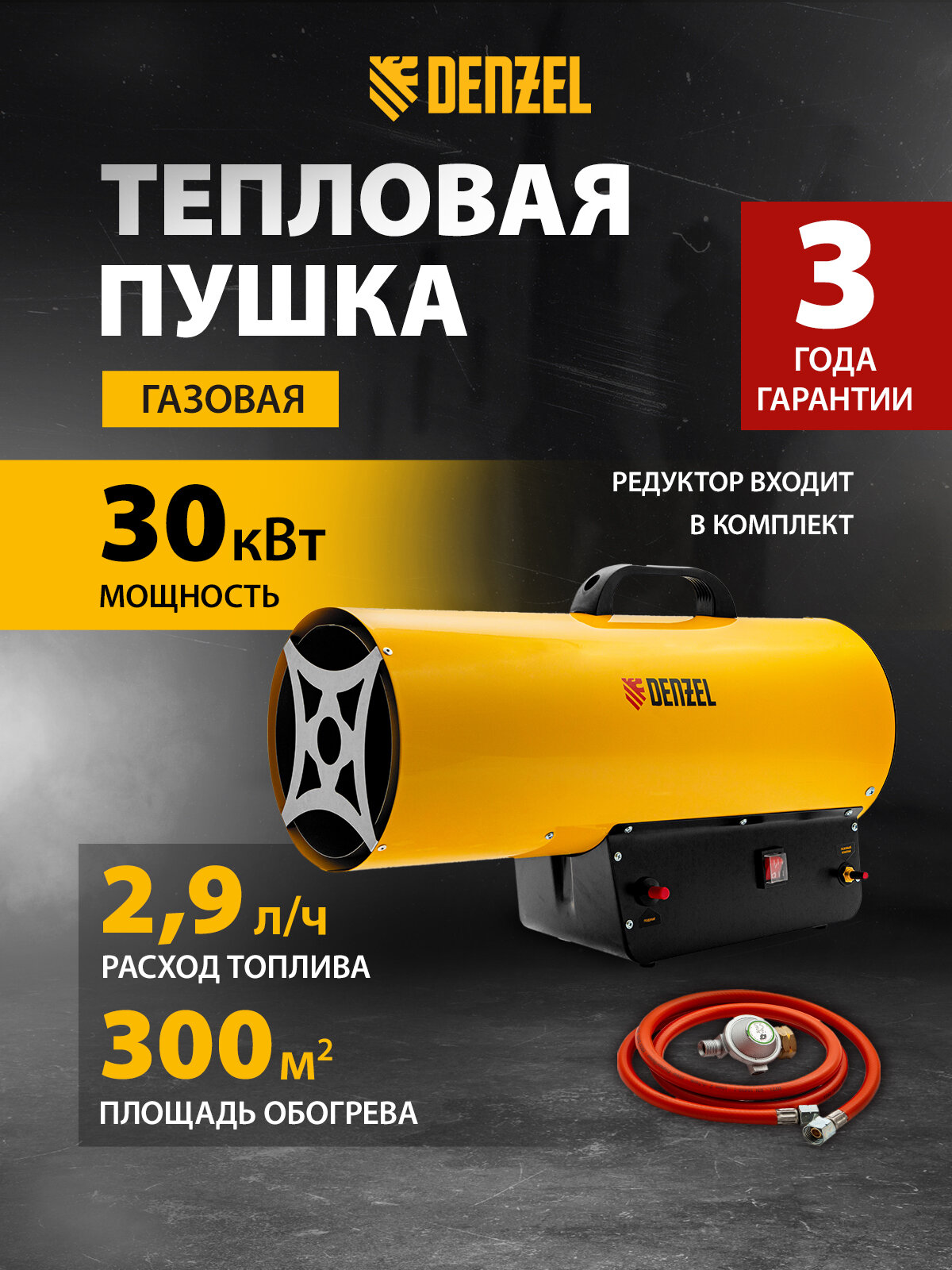 Газовая тепловая пушка Denzel GHG-50, 50 кВт, 1400 м3/ч, пропан-бутан, 96480 15 200 ₽