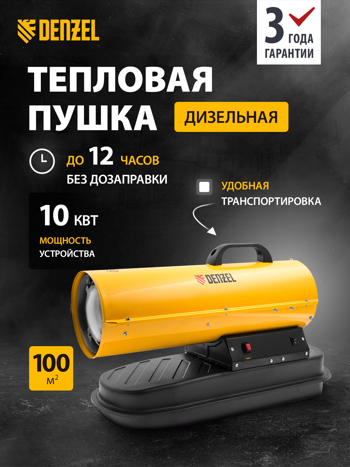 Дизельная тепловая пушка Denzel DHG-10 10 кВт, 300 м3/ч, прямой нагрев 96481 18 028 ₽