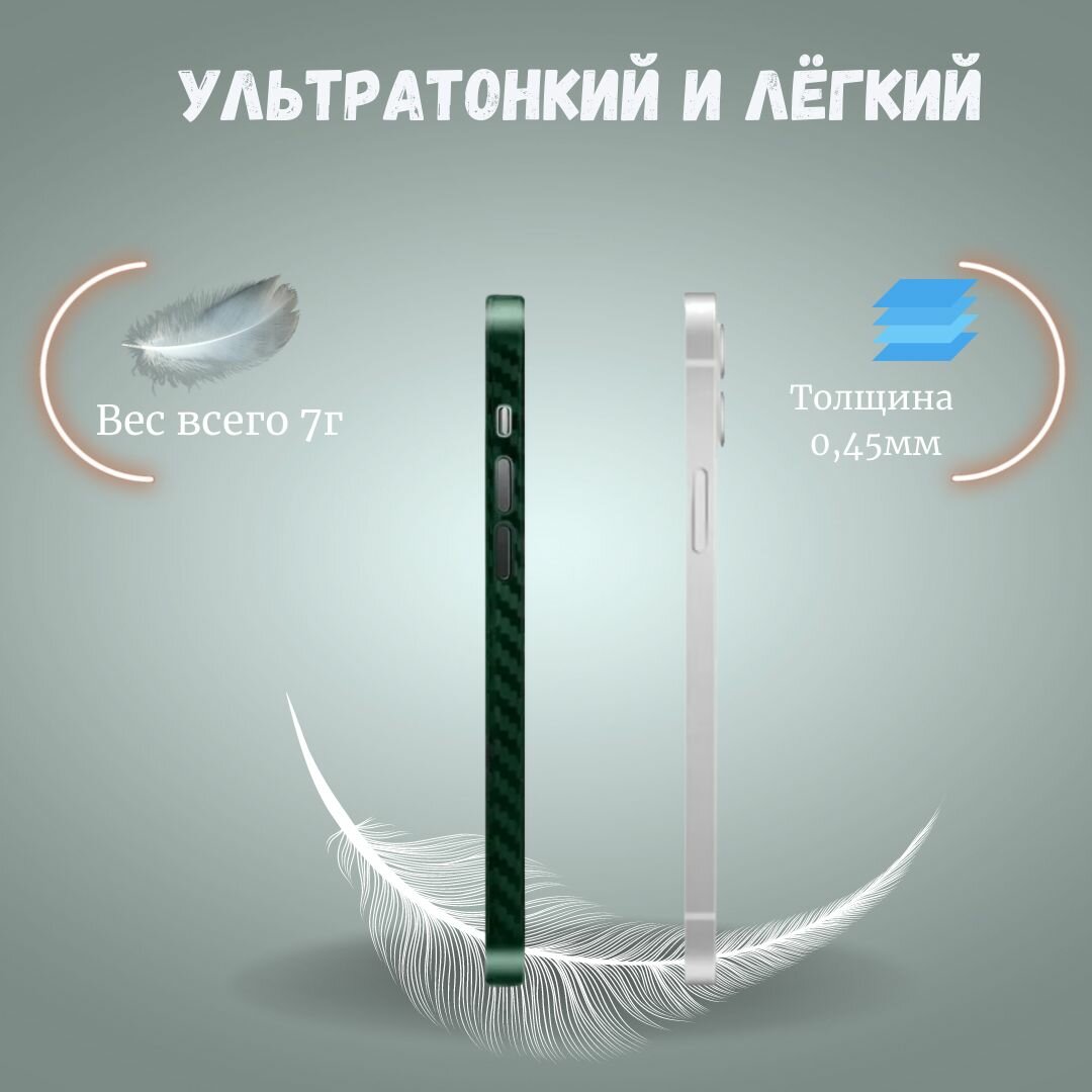 Ультратонкий чехол K-DOO Air Carbon для iPhone 12 Pro Max карбоновый / ультратонкий для Apple iPhone 12 Макс / карбон / с защитой камеры / Зеленый информация: