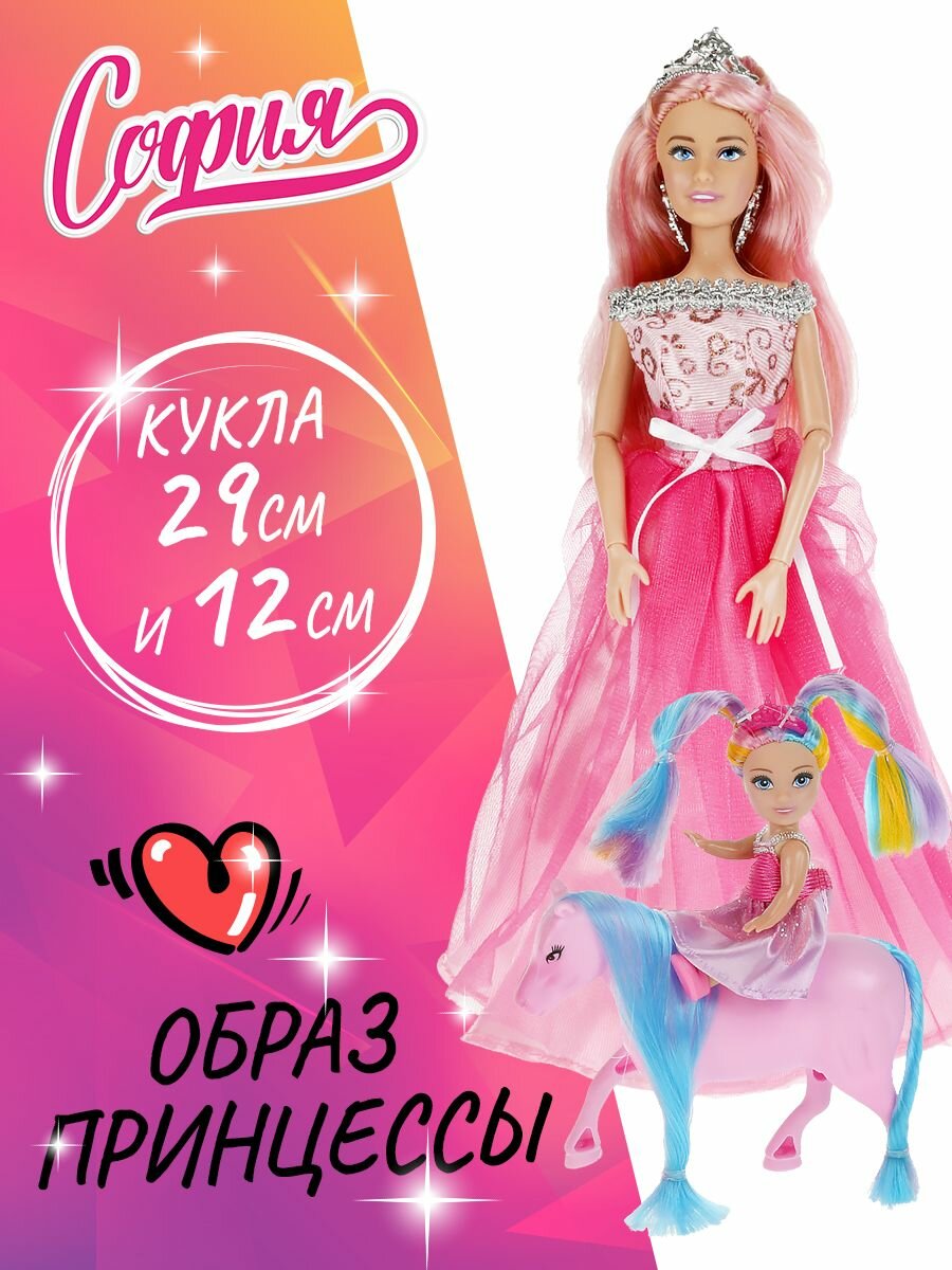 Шарнирная кукла София Принцесса с Анечкой, лошадью и аксессуарами, 29 см, ТМ Карапуз
