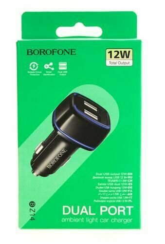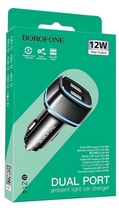 10 цен на Автомобильный адаптер питания BOROFONE BZ14 с 2 разъемами USB 2.4A, черный