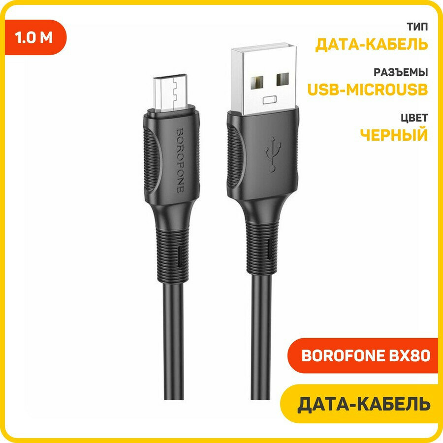 Дата-кабель Borofone BX80 USB-MicroUSB, 1 м, черный