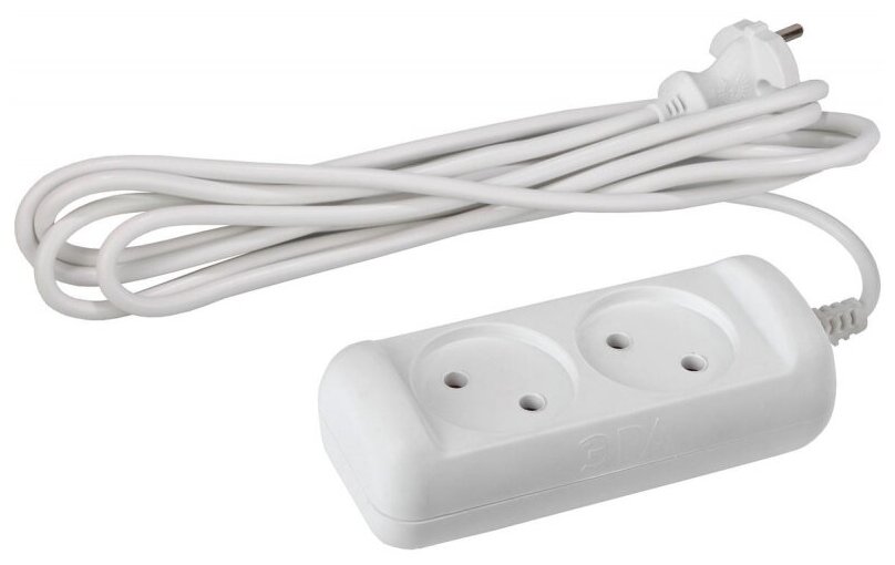 Удлинитель 2гн без З/К 3м белый 10А ПВС 2х1 U-2-3m ЭРА (1/10/840)