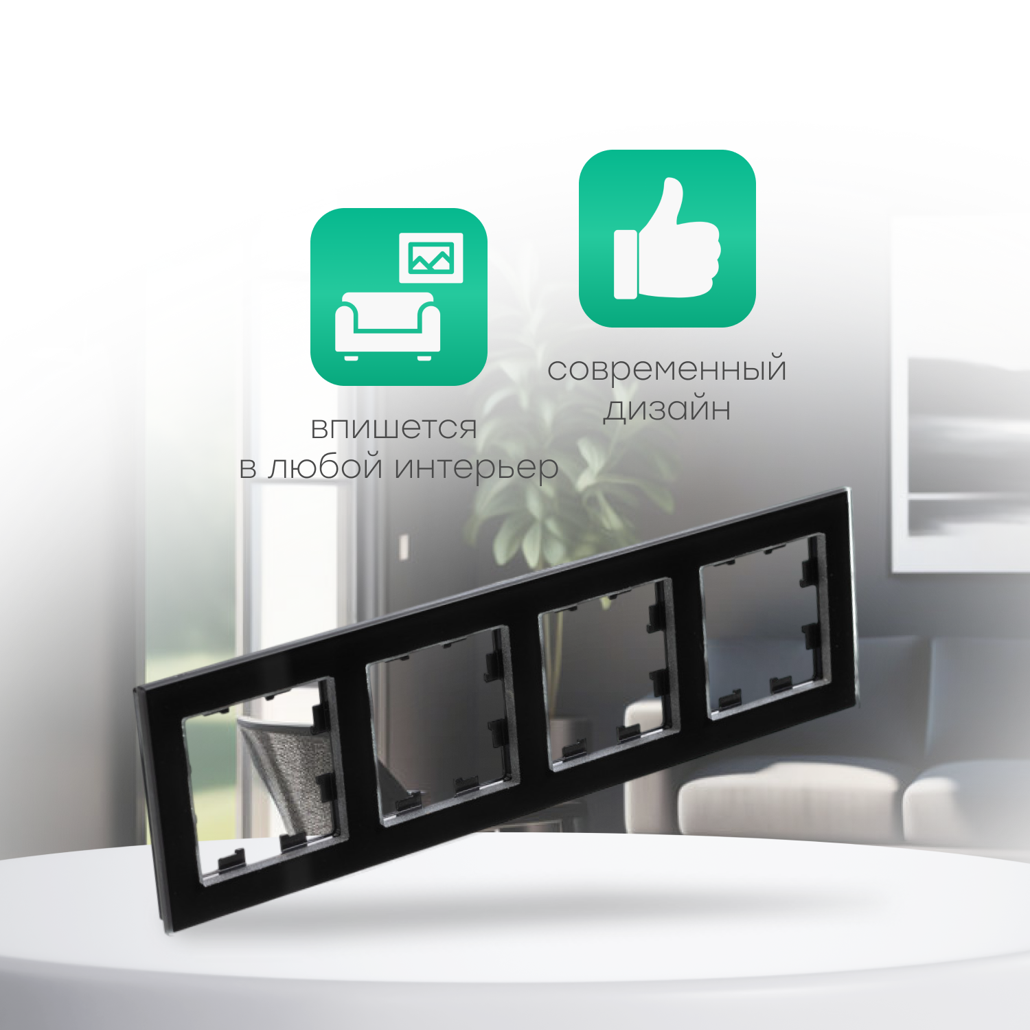 Рамка Schneider Electric Atlasdesign Nature, 4-постовая, универсальная, стекло черное