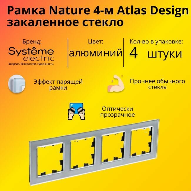 Рамка 4-м AtlasDesign Nature стекло алюм. SchE ATN320304 (3шт. в упак.)
