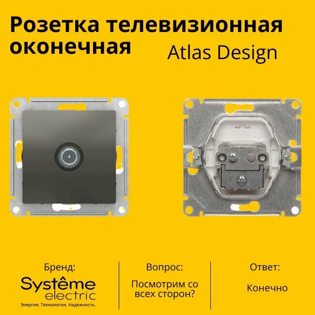 Розетка телевизионная оконечная Systeme Electric Atlas Design 1дБ, Сталь ATN000991 - 3 шт. информация: