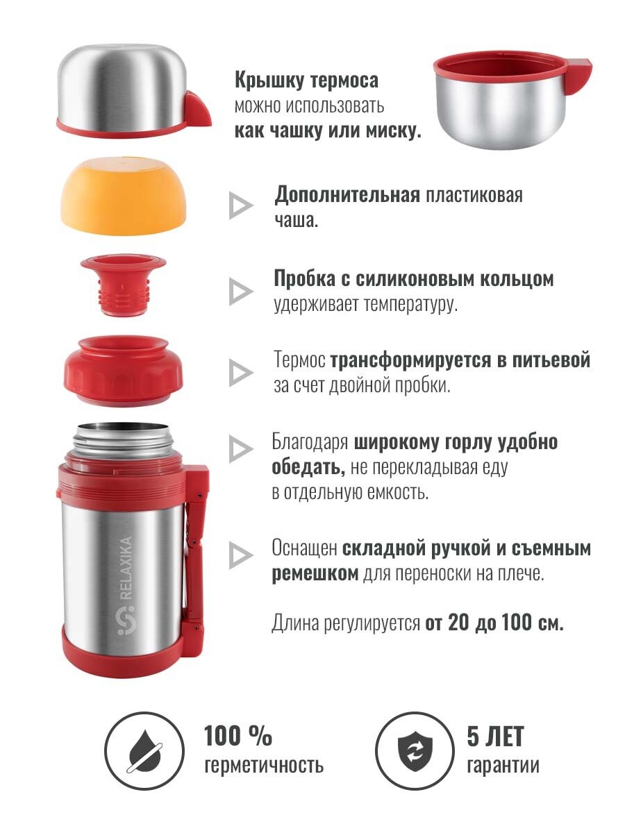 Термос универсальный для еды и напитков Relaxika 201 (1 литр), стальной, R201.1000.1 информация: