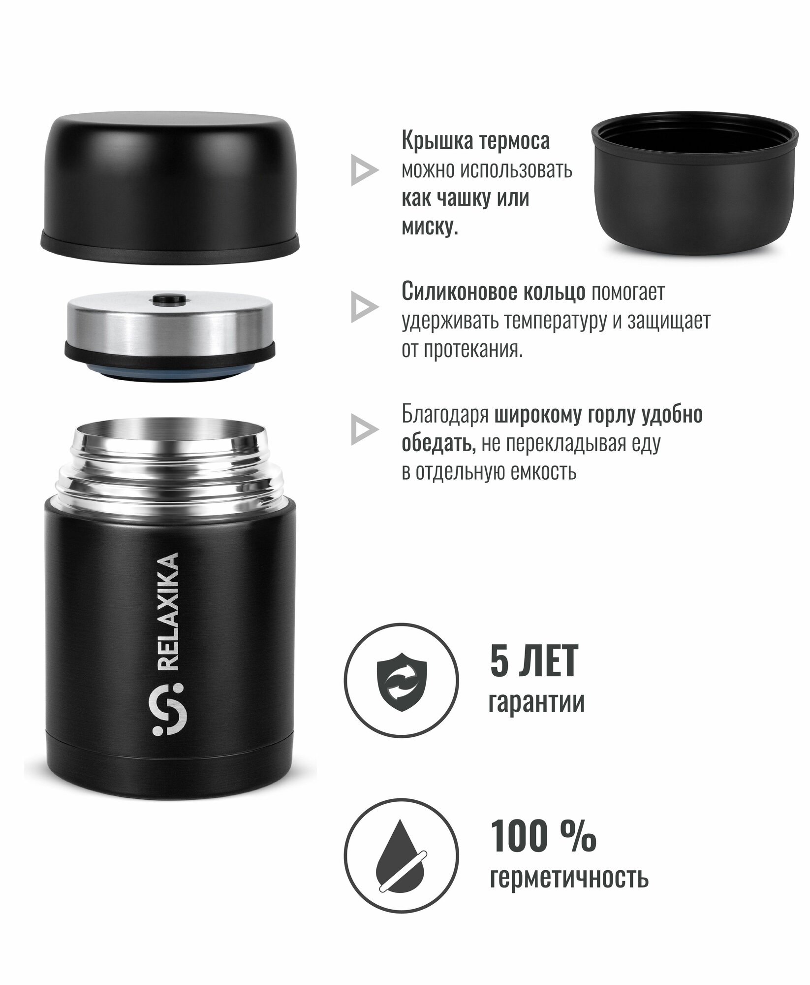Термос Релаксика Relaxika с широким горлом для еды (0,7 литра), черный, R301.700.2 информация: