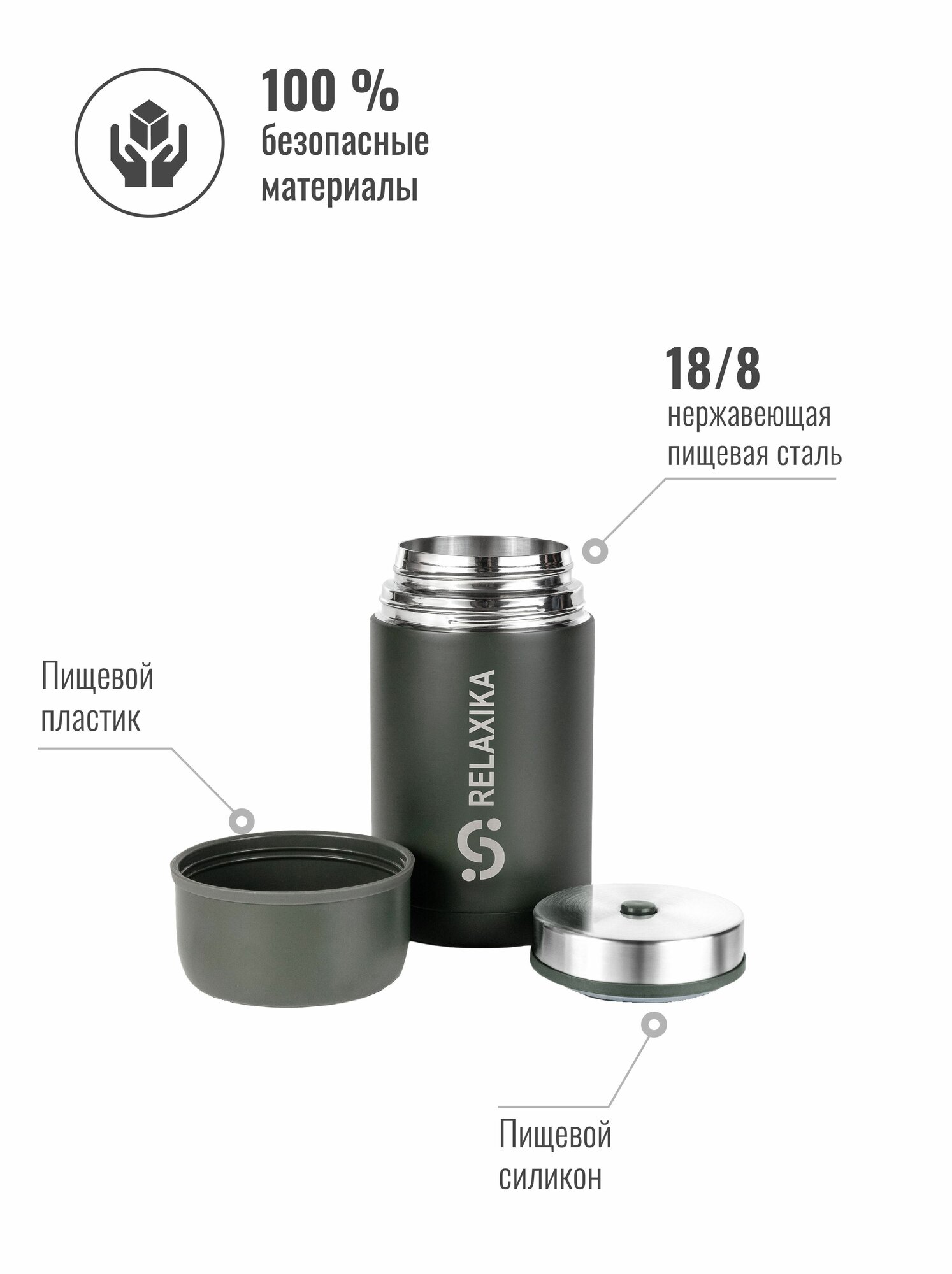 Термос Релаксика Relaxika с широким горлом для еды (1 литр), хаки, R301.1000.8 информация: