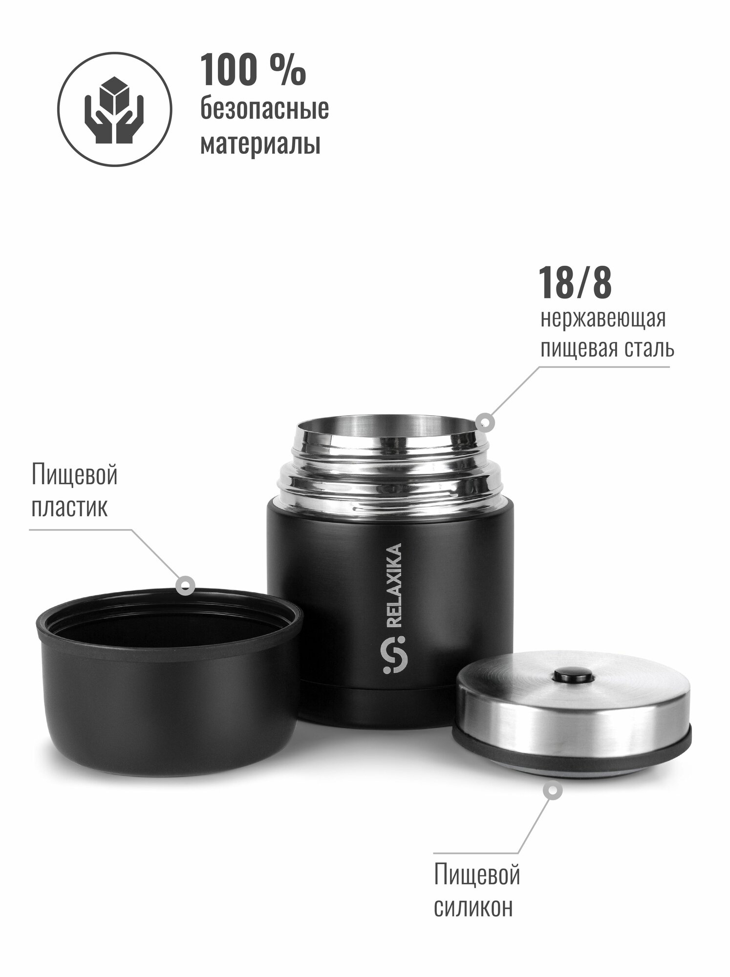 Термос д/еды Relaxika 1л широкое горло, нерж.сталь, черный 7 120 ₽