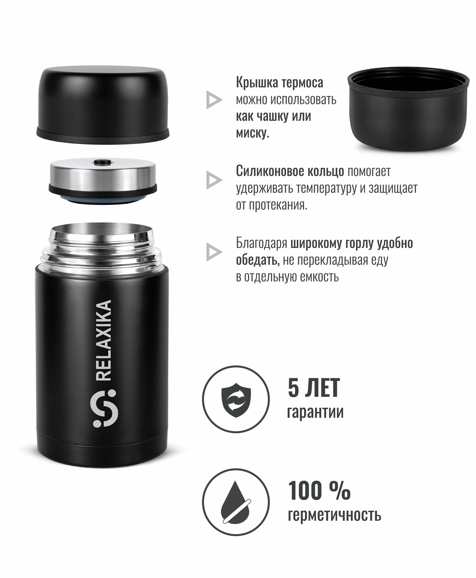Термос Релаксика Relaxika с широким горлом для еды (1 литр), черный, R301.1000.2 2 690 ₽