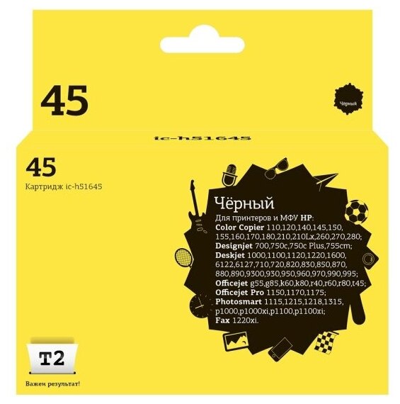 Картридж T2 ic-h51645 (45) Black для DJ 1000cse/1220C/6122/6127/9300, OJ g55/g85/k60/k80/r40/r60 .