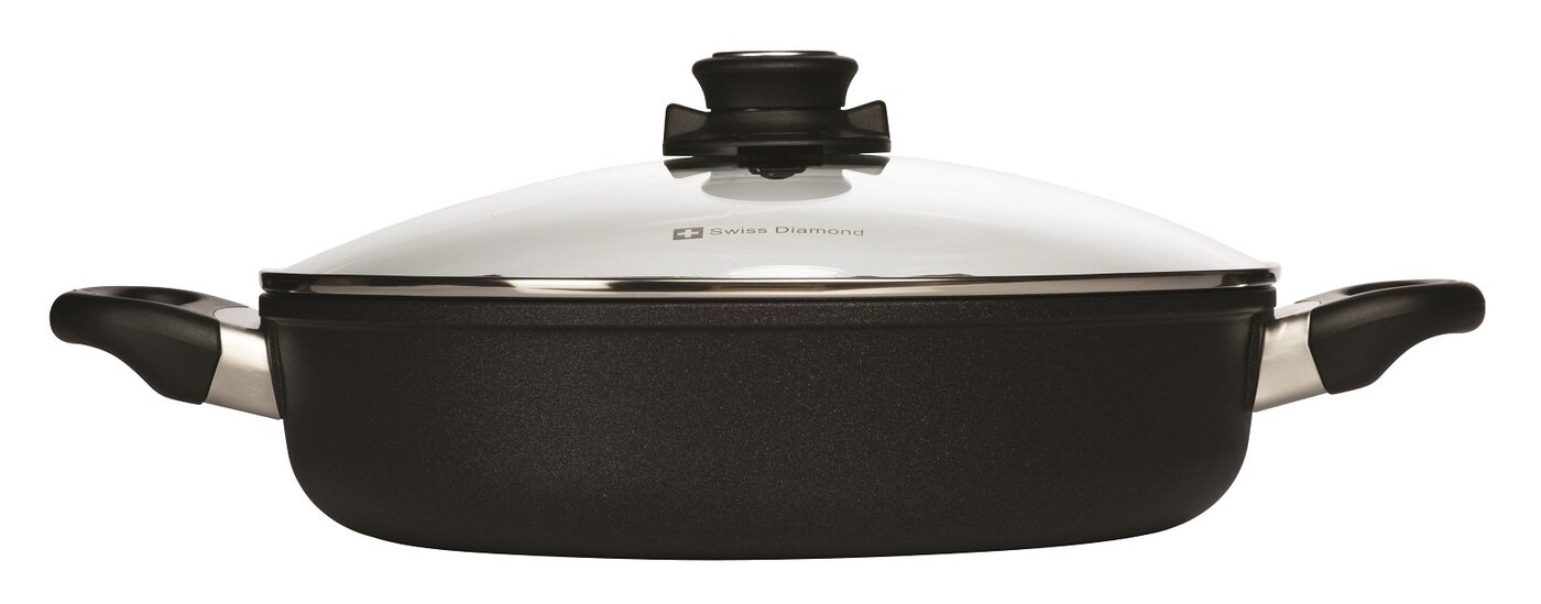 Алюминиевый сотейник с алмазным покрытием, с двумя ручками и крышкой, 3.5 л, 28 см, Черный Swiss Diamond XD Classic+