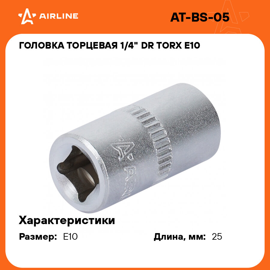 Головка торцевая 1/4" DR TORX E10 AT-BS-05 AIRLINE информация: