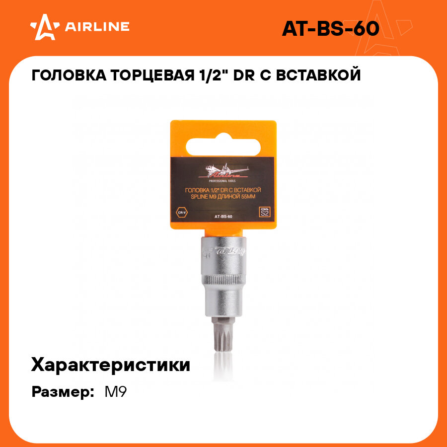 AIRLINE AT-BS-60 Головка 1/2" DR с вставкой SPLINE M9 длиной 55мм информация: