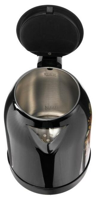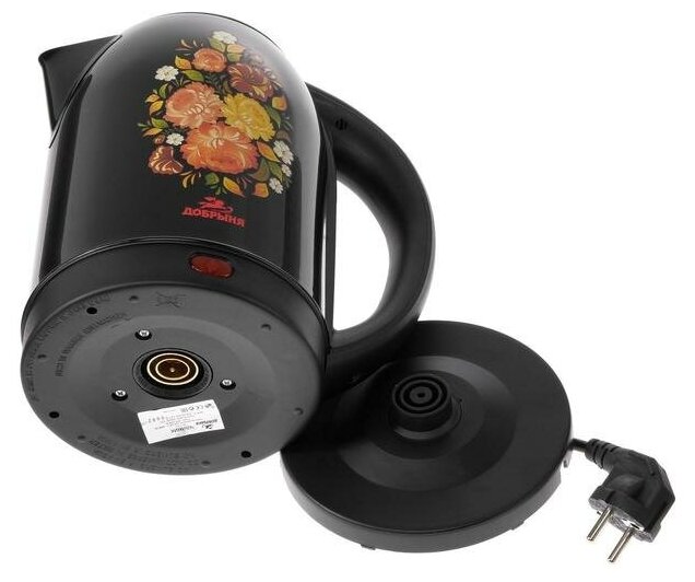 Чайник электрический "Добрыня" DO-1219, металл, 2 л, 2000 Вт, черный с цветами