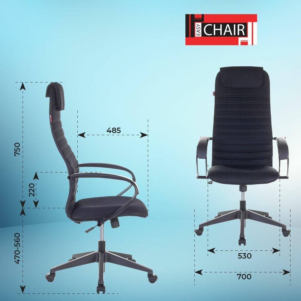 Отзывы на Кресло компьютерное для руководителей Easy Chair 655, офисный стул на колесиках, с подголовником, искусственная кожа/ткань, черный