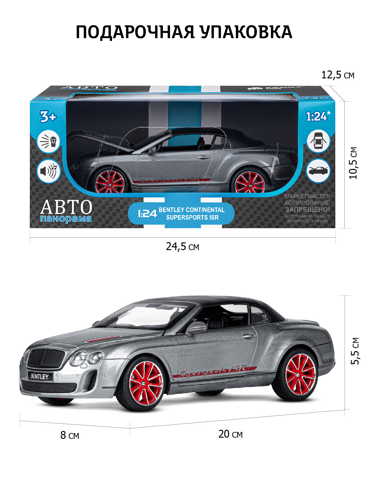 Модель машины Автопанорама 1:24 Bentley Continental Supersports ISR, серый металлик, открываются двери, капот и багажник, свет, звук 2 476 ₽