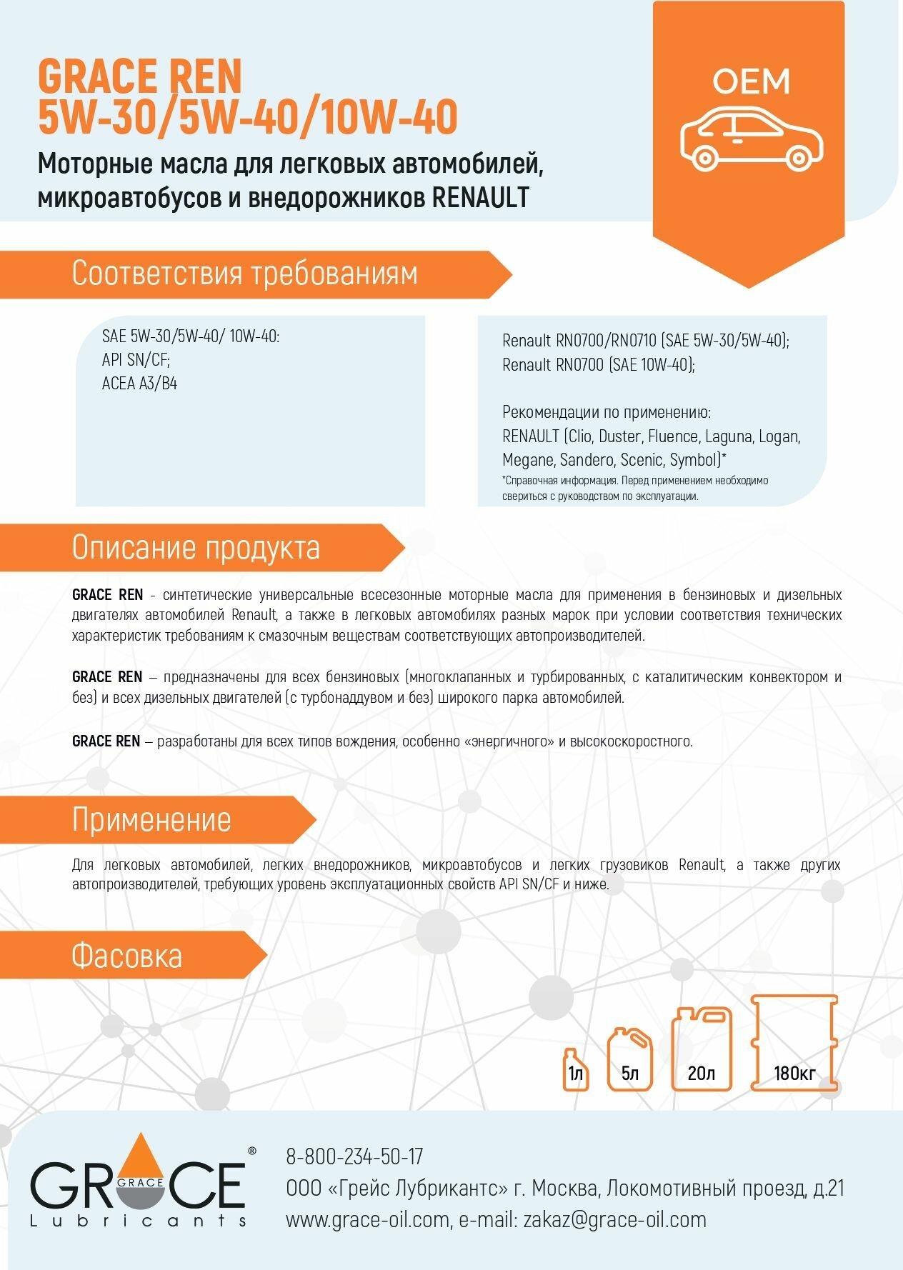 Масло Моторное Для Renault 5W40 Синт.5л Grace GRACE арт. 4603728813424 информация:
