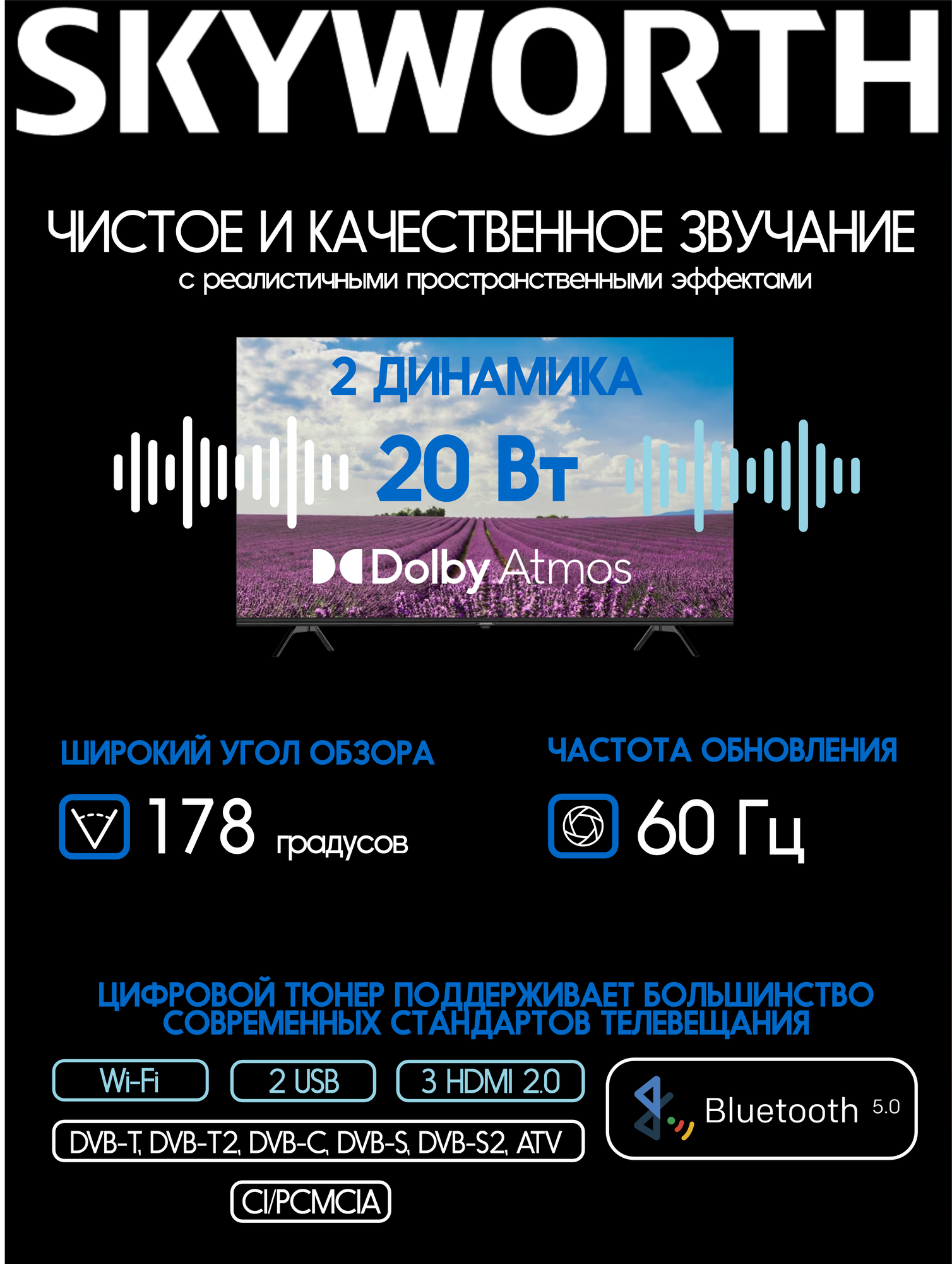 Отзывы на Телевизор SKYWORTH 50SUE9500, 50", 3840x2160, DVB-T2/C/S/S2, HDMI 3, USB 2, Smart TV, QLED 9855392
