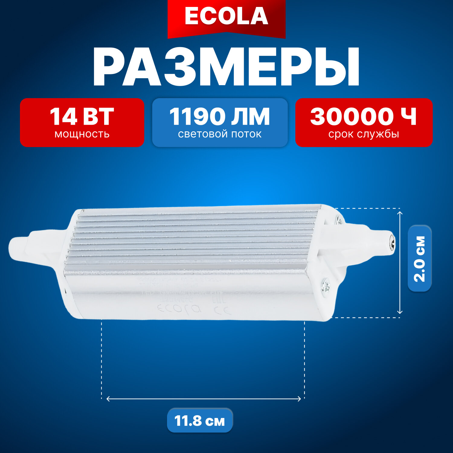 Ecola J7sv14elc Projector LED Lamp Premium 14,0W F118 220V R7S 4200K (алюм. радиатор) 118X20X32 1шт