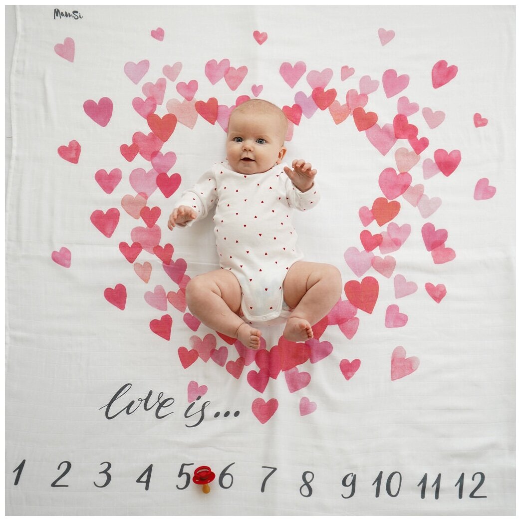 Муслиновая пеленка 120х120 см / детский фотофон / фотопеленка / Цифры