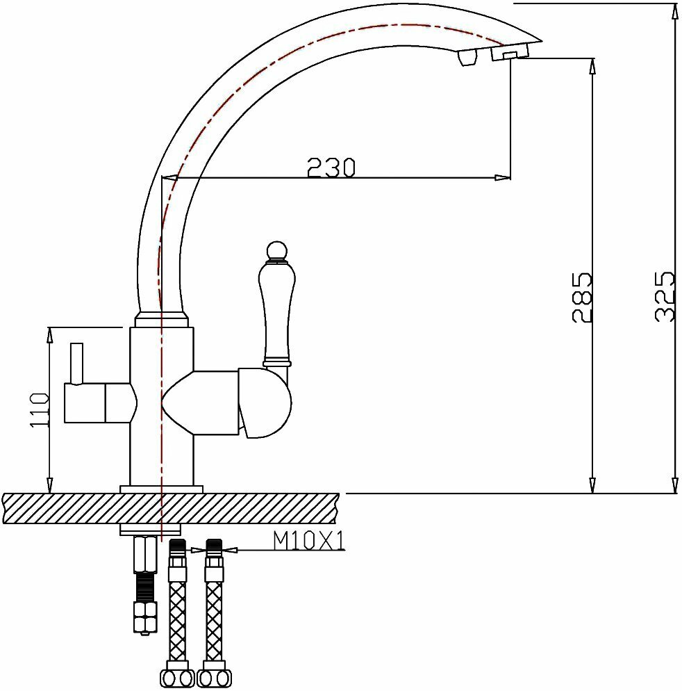 | Комплектация | Смеситель, гибкая подводка 45 см ", комплект крепежа, переходник-цанга для подключения фильтра. |
