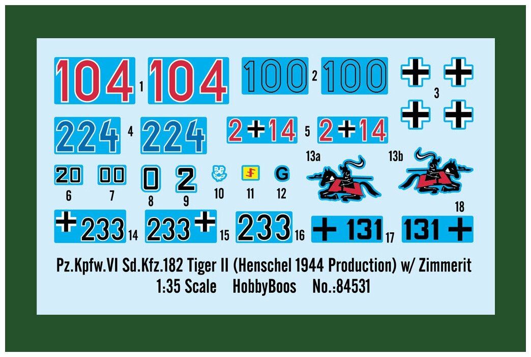84531 Pz.Kpfw. VI Sd.Kfz. 181 Tiger II (Henschel 1944 Production) Hobby Boss в масштабе 1:35 Сборная модель информация:
