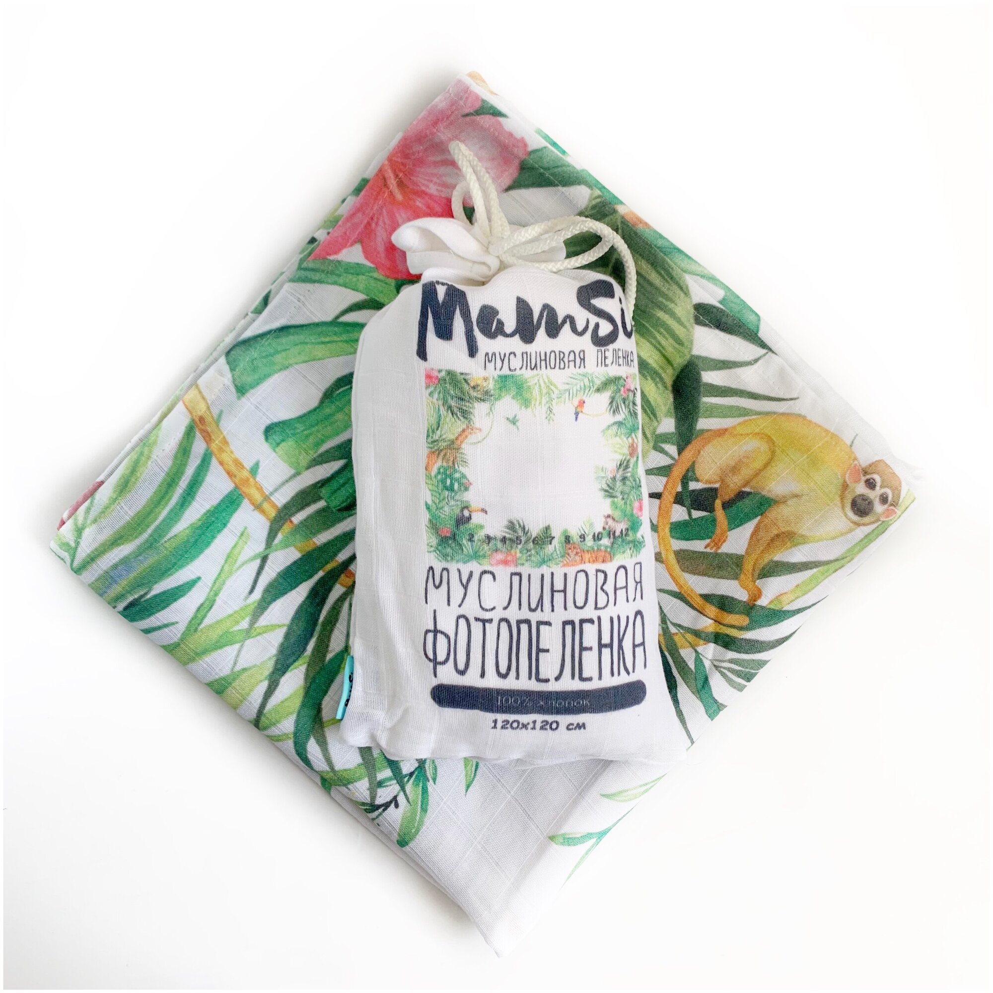 Отзывы на Муслиновая пеленка 120х120 см / детский фотофон / фотопеленка / Джунгли